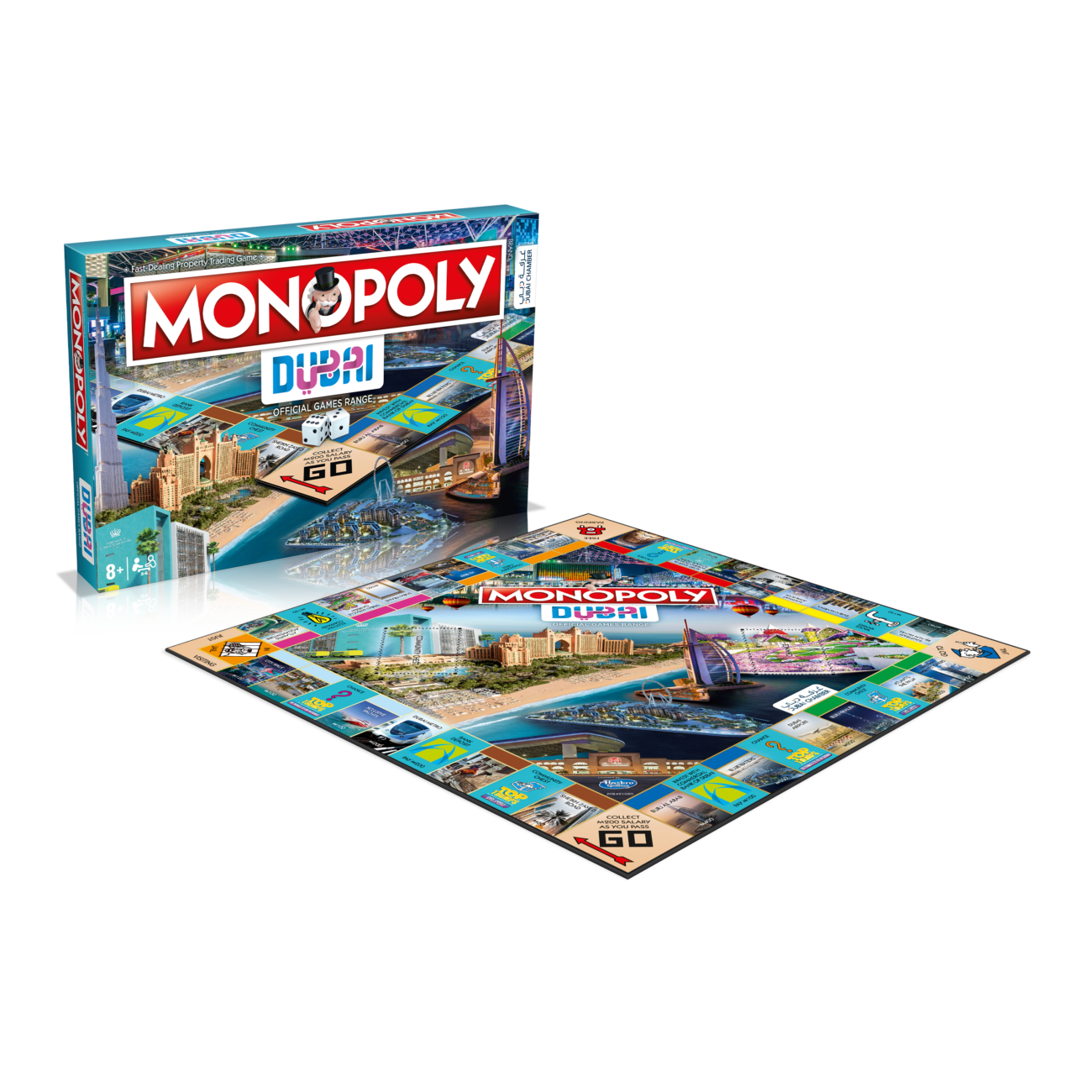 Udforsk Dubai og byens attraktioner ved at rejse igennem MONOPOLY-universet! Start din rejse i den berømte Sheikh Zayed, men overhold færdselsreglerne under rejsen. Vejpiraterne ender i fængslet! Nyd udsigten fra de mægtige skyskrabere og dernæst tag til La Mer for at mærke det varme sand under dine fødder og vinden fra Den Persiske Golf. Hvis du trænger til havoplevelser, opfordrer vi dig til at tage til Atlantis Aquaventure. På vejen kan du kigge forbi det ikoniske Dubai Frame m. udsigt over midtbyen. Endelig når du frem til det springende punkt i din rejse! Er du klar til indkøb? Lad dine fødder føre dig til Festival City el. Mall of the Emirates. Fortabt i indkøbsvanviddet prøv ikke at glemme, at Dubai ikke handler kun om en leg. Under din rejse gennem byen kan du netop også vinde en auktion på den fremragende verdensberømte skole – Nord Anglia International School og Global Village, der kombinerer højkultur m. underholdning til hele familien. Før din rundvisning ender er du nødt til at se de største visitkort for Dubai: det enorme Atlantis The Palm, verdens højeste skyskraber Burj Khalifa, den fortryllende Bluewaters Island og det luksuriøse hotel – Burj Al Arab.